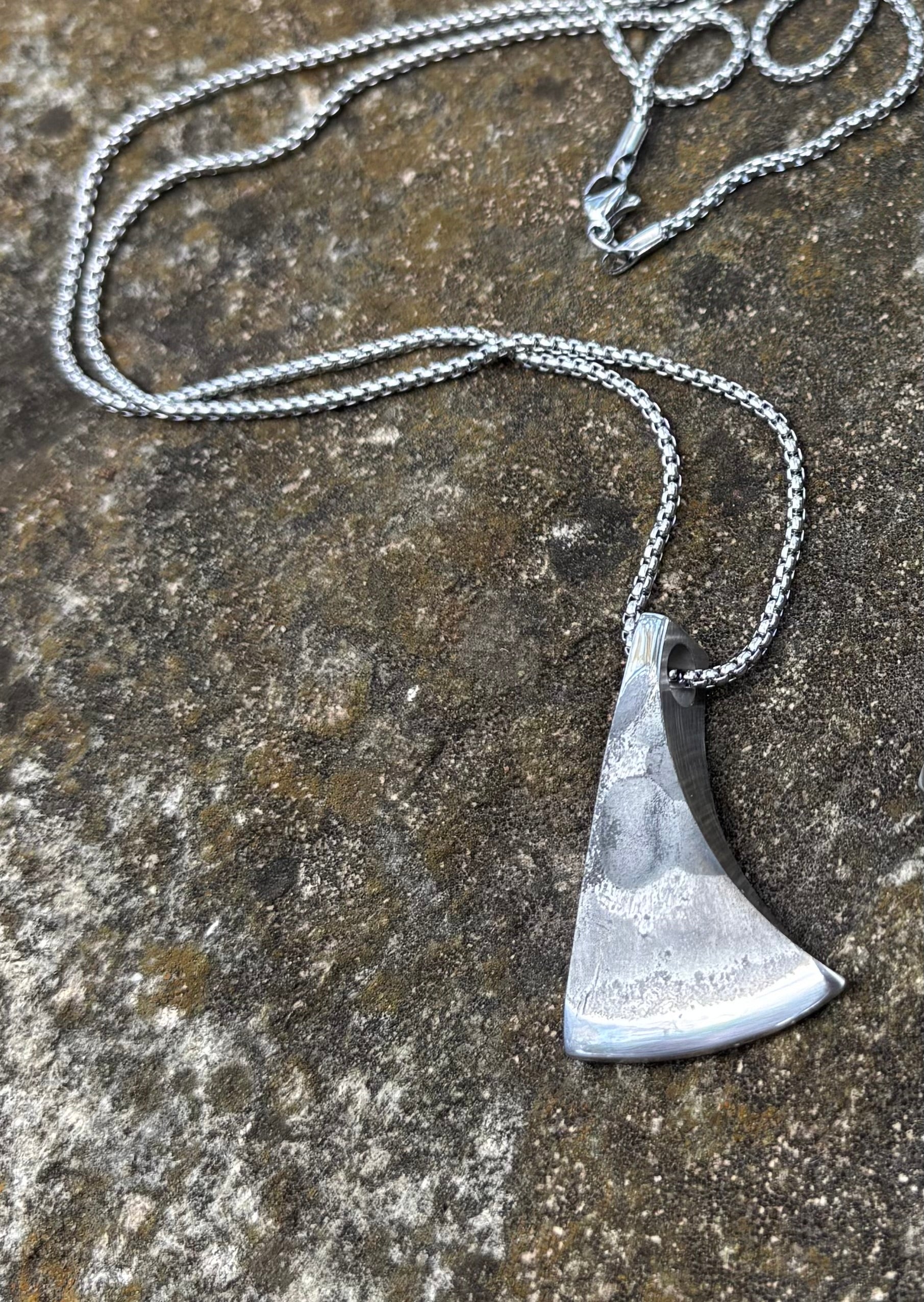 Forged 304L stainless steel axe pendant with 30 inch stainless steel box chain necklace.